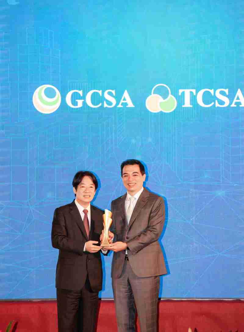 达全方位永续表现获全球永续奖及台湾永续奖肯定,,,由副总统赖清德颁奖 (左),,,,william威廉中文官网总经理柯富仁 (右) 代表领奖