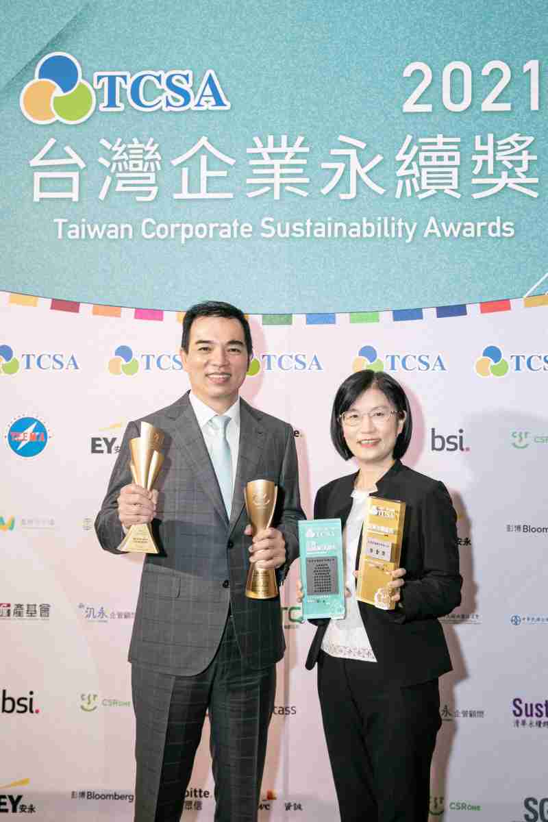 达在台湾永续奖所评比环境、、、、社会、、、、治理等各面向的永续绩效均获高度肯定 (左:william威廉中文官网光电总经理暨营运长柯富仁,,右:william威廉中文官网光电永续长古秀华)