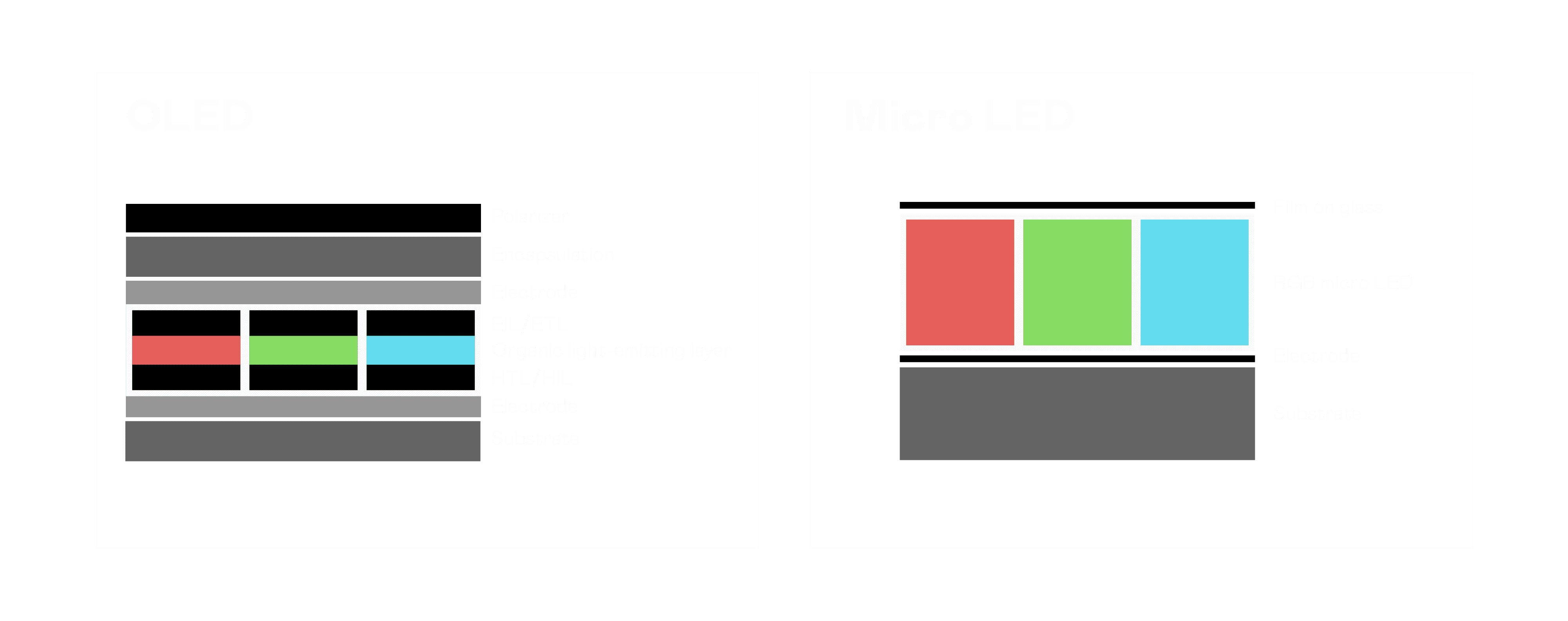 以 LED 做为显示画素,,,可让 LED 的发光效率发挥到极致,,从而让显示器具备优异的亮度表现,,不论是在户外或室内,,,均具备出众的显示效果。。。同时,,与使用有机材料的 OLED 相比,,LED 具备更稳定、、、寿命更长的特性,,不仅不会有画面烙印问题,,,,而且更不容易出现故障、、坏点。。。。
